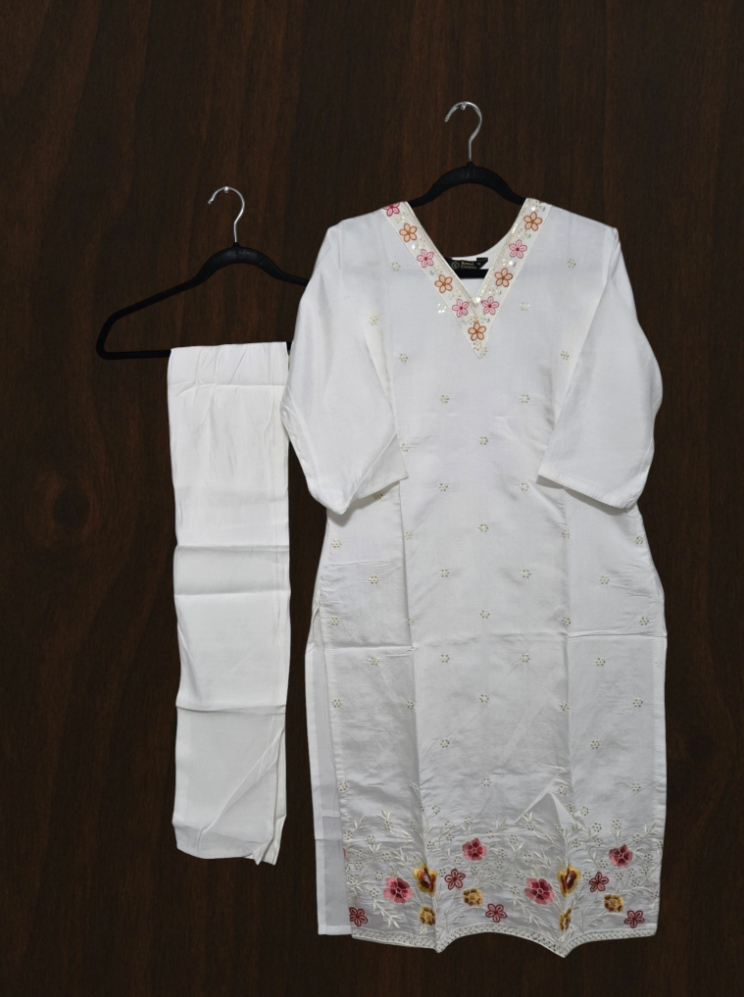 Be the first to review “Silk Salwar Set with Embroidery (White)”