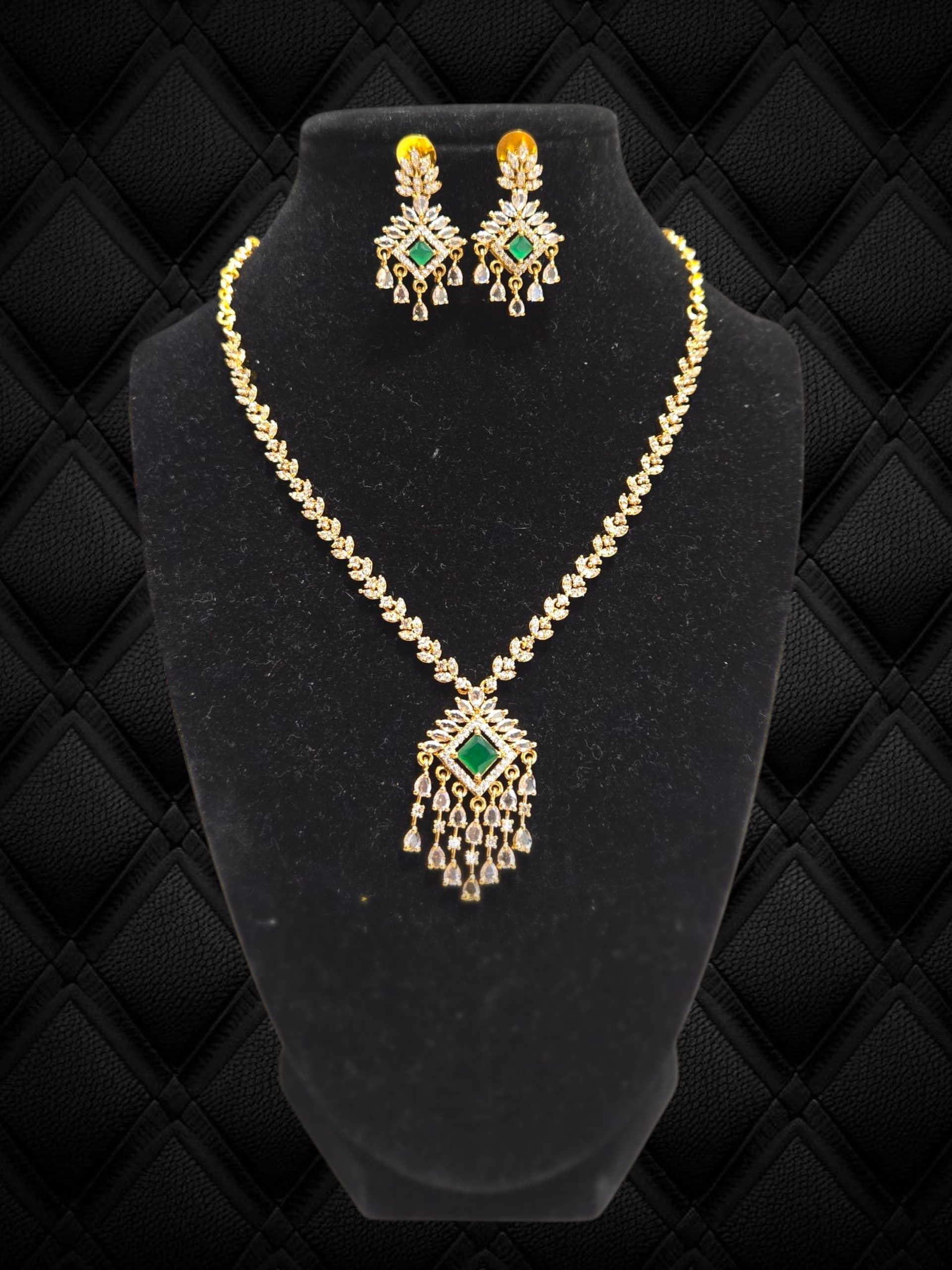 Elegant AD stone Necklace Set with Hanging Tassels in pendant and earrings Lightweight Comes with backchain